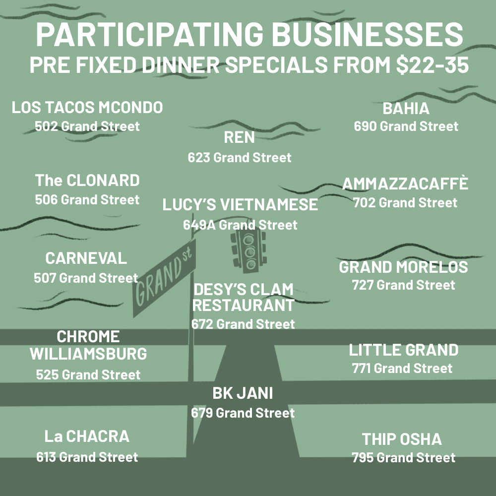 Get ready for the best dining event North Brooklyn has to offer. 14 restaurants on Grand Street are offering pre fixed menus this go around, showcasing the excellent dining and nightlife scene in the neighborhood. The two week celebration of local cuisine begins on Monday, January 5th and runs through Sunday, January 18th.